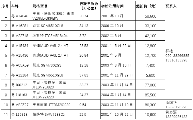 4、競拍標的:二手車(chē)11輛。