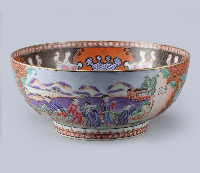 Lot 16 清乾隆  廣彩內外四面開(kāi)光人物賞碗