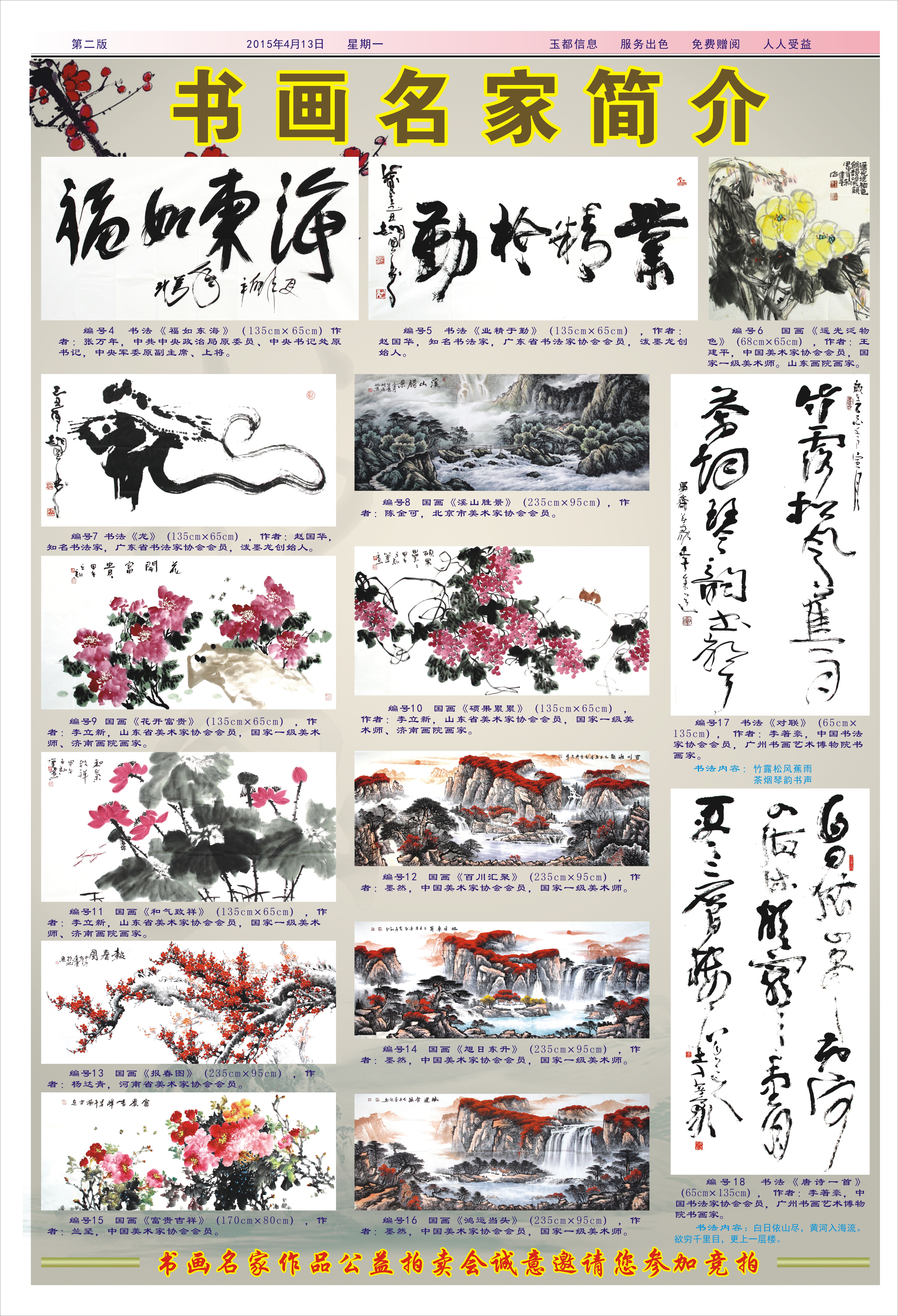 中國當代名畫(huà)家書(shū)畫(huà)(玉器)作品公益拍賣(mài)