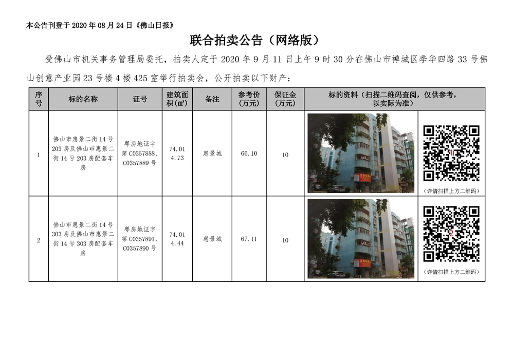 :佛山市機關(guān)事務(wù)管理局委托房產(chǎn)一批聯(lián)合拍賣(mài)會(huì )