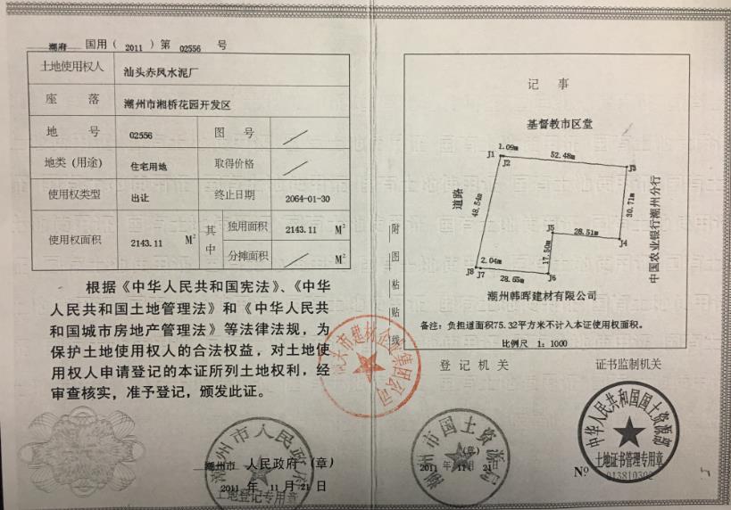 受委托,我司定于2021年1月22日(星期五)上午10時(shí)開(kāi)始,在中拍平臺(https://paimai.caa123.org.cn)舉行拍賣(mài)會(huì ),公開(kāi)拍賣(mài)位于潮州市湘橋花園開(kāi)發(fā)區的國有建設用地使用權及地上建筑物〔《國有土地使用證》證號:潮府國用(2011)第02556號,土地用途為住宅用地,土地使用權面積為2143.11平方米;地上建筑物為二幢未配套的宿舍住宅樓,建筑面積為7102平方米,未辦理權屬證件〕。