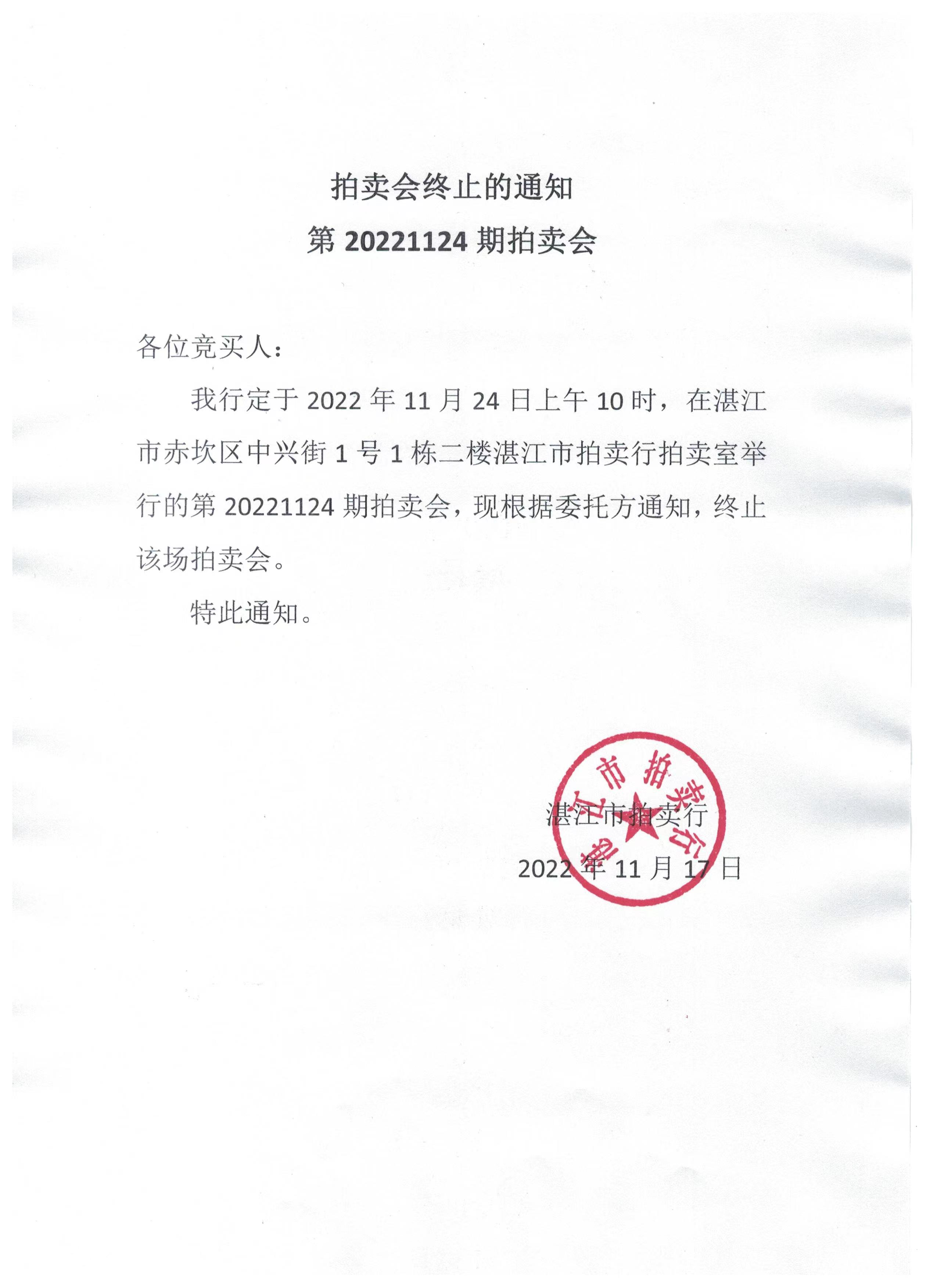 標  題:湛江市拍賣(mài)行第20221124期設備拍賣(mài)公告
