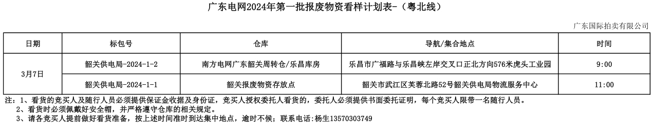 廣東電網(wǎng)2024年第一批報廢物資拍賣(mài)公告(粵北-附行程表)