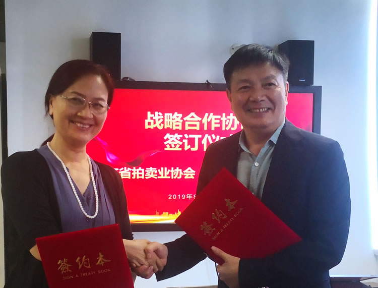 圖為:廣東省拍賣(mài)業(yè)協(xié)會(huì )會(huì )長(cháng)雷敏與北京拍賣(mài)行業(yè)協(xié)會(huì )會(huì )長(cháng)甘學(xué)軍簽訂《戰略合作協(xié)議》