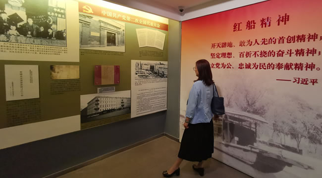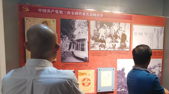 圖為:參觀(guān)中共三大歷史文物、珍貴資料