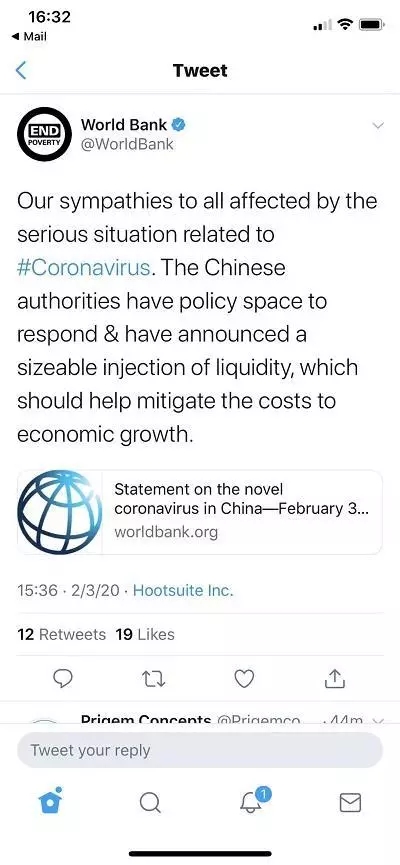 標      題:世界銀行:中國政府擁有充足政策空間應對疫情