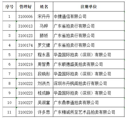三、廣東省31期國家注冊拍賣(mài)師名單