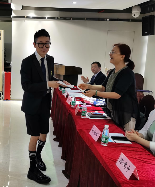 圖為:雷敏會(huì )長(cháng)給新晉拍賣(mài)師頒發(fā)資格證書(shū)
