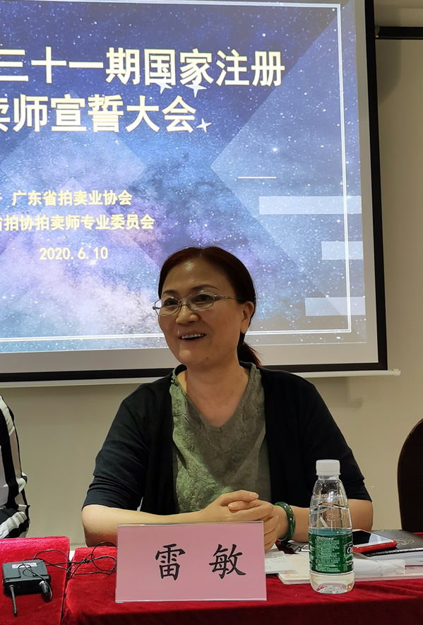 雷敏會(huì )長(cháng)提出三點(diǎn)希望。第一,她認為拍賣(mài)師作為拍賣(mài)活動(dòng)的主角,同時(shí)是拍賣(mài)企業(yè)的骨干,應該起到模范帶頭作用,希望各位拍賣(mài)師要牢記誓言,不忘初心,發(fā)揮堅持不懈的奮斗精神。。其次,希望要堅持學(xué)習。在新時(shí)期,新拍賣(mài)師肩負著(zhù)改革、創(chuàng )新的使命,面對互聯(lián)網(wǎng)技術(shù)、尤其5G技術(shù)快速發(fā)展、廣泛應用的時(shí)期不斷探索,將拍賣(mài)的優(yōu)勢與現代技術(shù)完美結合。第三,也是最重要的一點(diǎn),希望要規范執業(yè),要珍惜每一次上臺主持的機會(huì )、尊重這份職業(yè)、這個(gè)身份。嚴格按照《拍賣(mài)法》等法律法規及《拍賣(mài)師操作規范》的標準來(lái)執業(yè)。