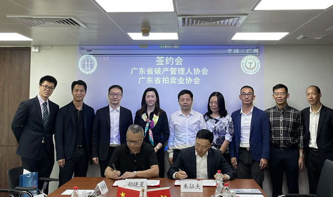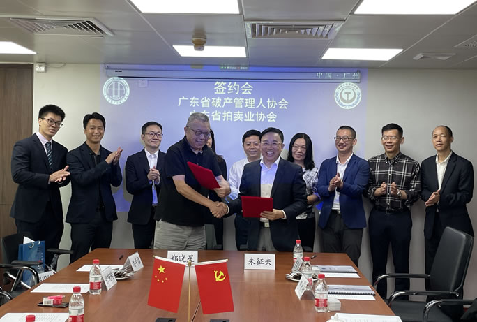4月30日上午,廣東省破產(chǎn)管理人協(xié)會(huì )與廣東省拍賣(mài)業(yè)協(xié)會(huì )簽定了《戰略合作協(xié)議》。廣東省破產(chǎn)管理人協(xié)會(huì )會(huì )長(cháng)朱征夫和廣東省拍賣(mài)業(yè)協(xié)會(huì )會(huì )長(cháng)鄭曉星在協(xié)議上簽字。出席簽字儀式的還有省破產(chǎn)管理人協(xié)會(huì )副會(huì )長(cháng)盧林、韓振平,監事長(cháng)胡敏珊,秘書(shū)長(cháng)董碩,副秘書(shū)長(cháng)魯尚君、鄭飛虎,會(huì )長(cháng)助理李震東,以及省拍賣(mài)業(yè)協(xié)會(huì )副會(huì )長(cháng)張曉玲、溫國健、潘年添。雙方期待盡快指導會(huì )員單位開(kāi)展合作事宜,提高破產(chǎn)財產(chǎn)處置成功率。簽字儀式前,鄭會(huì )長(cháng)還親切會(huì )見(jiàn)了信達資產(chǎn)管理公司廣東省分公司副經(jīng)理李立琪先生。