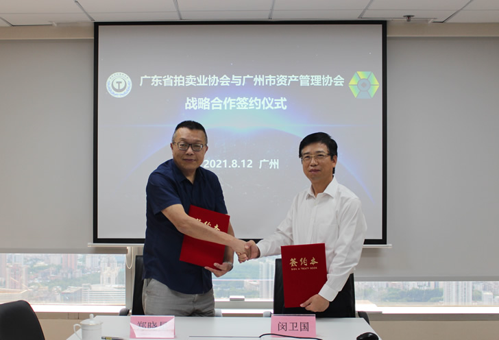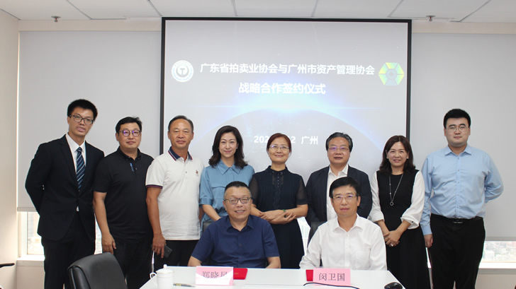 為積極引導資產(chǎn)管理人行業(yè)與我省拍賣(mài)行業(yè)廣泛合作與交流,提高粵港澳大灣區不良資產(chǎn)處置成功率。8月12日下午,廣東省拍賣(mài)業(yè)協(xié)會(huì )與廣州市資產(chǎn)管理協(xié)會(huì )正式簽訂《戰略合作協(xié)議》。協(xié)會(huì )黨支部書(shū)記雷敏,會(huì )長(cháng)鄭曉星,副會(huì )長(cháng)張曉玲、李保華、溫國健,秘書(shū)長(cháng)蔡健華,副秘書(shū)長(cháng)陳祖欣與廣州市資產(chǎn)管理協(xié)會(huì )會(huì )長(cháng)閔衛國,秘書(shū)長(cháng)屠朝鋒,理事兼黨支部書(shū)記王嵐,副秘書(shū)長(cháng)王永,會(huì )員部部長(cháng)李嘉玉等出席了簽約儀式。