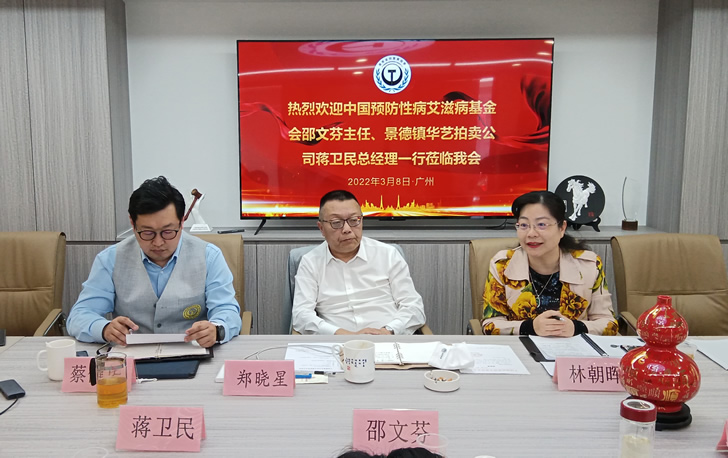 3月8日,中國防癆協(xié)會(huì )全國結核病攻堅項目聯(lián)合工作組、中國預防性病艾滋病基金會(huì )項目組負責人邵文芬、江西景德鎮華藝拍賣(mài)公司總經(jīng)理蔣衛民等一行蒞臨我會(huì ),就基金會(huì )授權我會(huì )在廣東省開(kāi)展項目籌款公益拍賣(mài)活動(dòng)事宜進(jìn)行了深入探討。