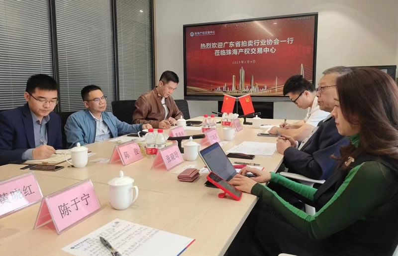 2月9日上午,協(xié)會(huì )會(huì )長(cháng)鄭曉星,副會(huì )長(cháng)張曉玲、溫國健、陳于寧,珠海華發(fā)拍賣(mài)有限公司常務(wù)副總經(jīng)理邢繼學(xué)一行拜訪(fǎng)珠海產(chǎn)權交易中心有限責任公司。公司董事長(cháng)夏德興,總經(jīng)理助理陳俊,橫琴?lài)H知識產(chǎn)權交易中心大客戶(hù)部總監黃曉紅熱情接待。雙方就信息互通共享、加強業(yè)務(wù)合作,促進(jìn)要素交易市場(chǎng)規范化發(fā)展進(jìn)行交流。