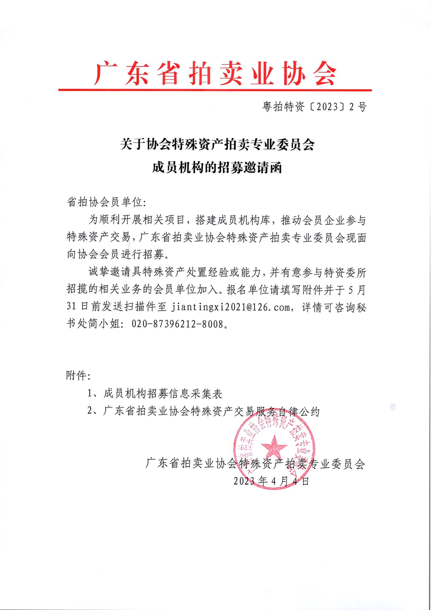 關(guān)于協(xié)會(huì )特殊資產(chǎn)拍賣(mài)專(zhuān)業(yè)委員會(huì )成員機構的招募邀請函