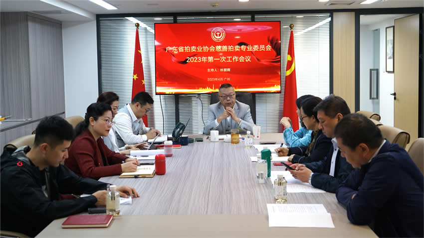 4月26日上午,廣東省拍賣(mài)業(yè)協(xié)會(huì )慈善拍賣(mài)專(zhuān)業(yè)委員會(huì )召開(kāi)2023年第一次工作會(huì )議。協(xié)會(huì )慈善拍賣(mài)專(zhuān)業(yè)委員會(huì )主任林朝暉,副主任黃勵、張曉玲、容國雄,委員王薦、趙勇參加會(huì )議,參加人數超過(guò)協(xié)會(huì )慈善拍賣(mài)專(zhuān)業(yè)委員會(huì )總人數的三分之二,會(huì )議有效。協(xié)會(huì )會(huì )長(cháng)鄭曉星,秘書(shū)長(cháng)蔡健華出席會(huì )議。會(huì )議由林朝暉主任主持。