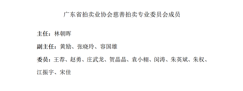 隨后,與會(huì )成員進(jìn)行了慈善拍賣(mài)經(jīng)驗分享,討論并通過(guò)了《廣東省拍賣(mài)業(yè)協(xié)會(huì )慈善拍賣(mài)專(zhuān)業(yè)委員會(huì )工作條例首批委員會(huì )成員名單。