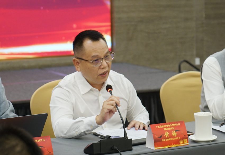 會(huì )議伊始,協(xié)會(huì )副會(huì )長(cháng)、粵西片區拍賣(mài)企業(yè)代表黃海致歡迎詞,對各地參會(huì )代表蒞臨茂名參會(huì )表示熱烈歡迎。黃會(huì )長(cháng)介紹了茂名市近年來(lái)拍賣(mài)企業(yè)的經(jīng)營(yíng)情況,分析茂名拍賣(mài)市場(chǎng)目前遇到的困難和問(wèn)題,他希望粵西地區拍賣(mài)企業(yè)能在省拍協(xié)的指導下積極做好政策協(xié)調工作,主動(dòng)為行業(yè)健康發(fā)展建言獻策。