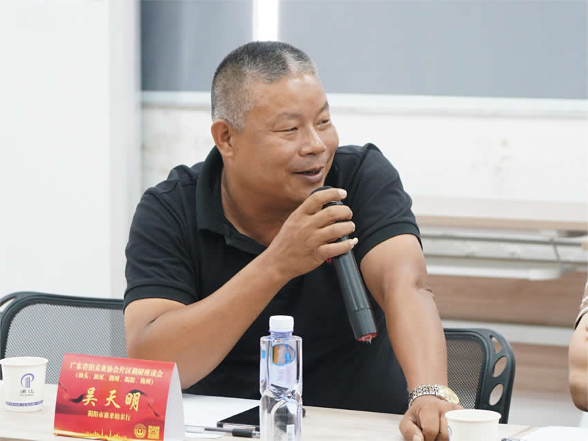 隨后,協(xié)會(huì )秘書(shū)長(cháng)蔡健華通報了汕頭、汕尾、潮州、揭陽(yáng)、梅州5地的拍賣(mài)行業(yè)經(jīng)營(yíng)情況,從行業(yè)統計數據顯示,上述5市成交額已基本恢復疫情前水平,但仍以傳統政策性業(yè)務(wù)為主,希望通過(guò)這次座談會(huì )議,引導企業(yè)拓展新思路。