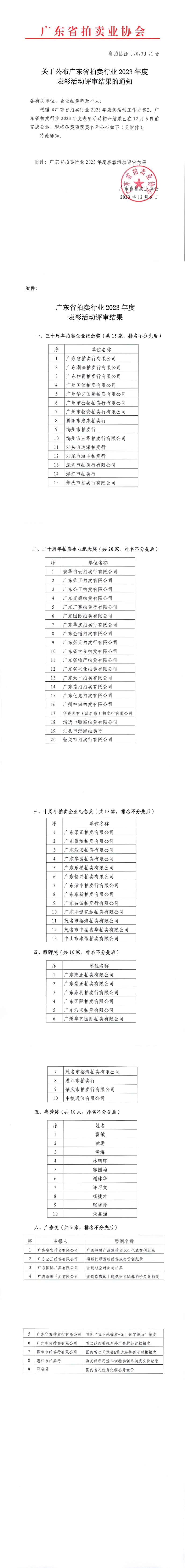:關(guān)于公布廣東省拍賣(mài)行業(yè)2023年度表彰活動(dòng)評審結果的通知