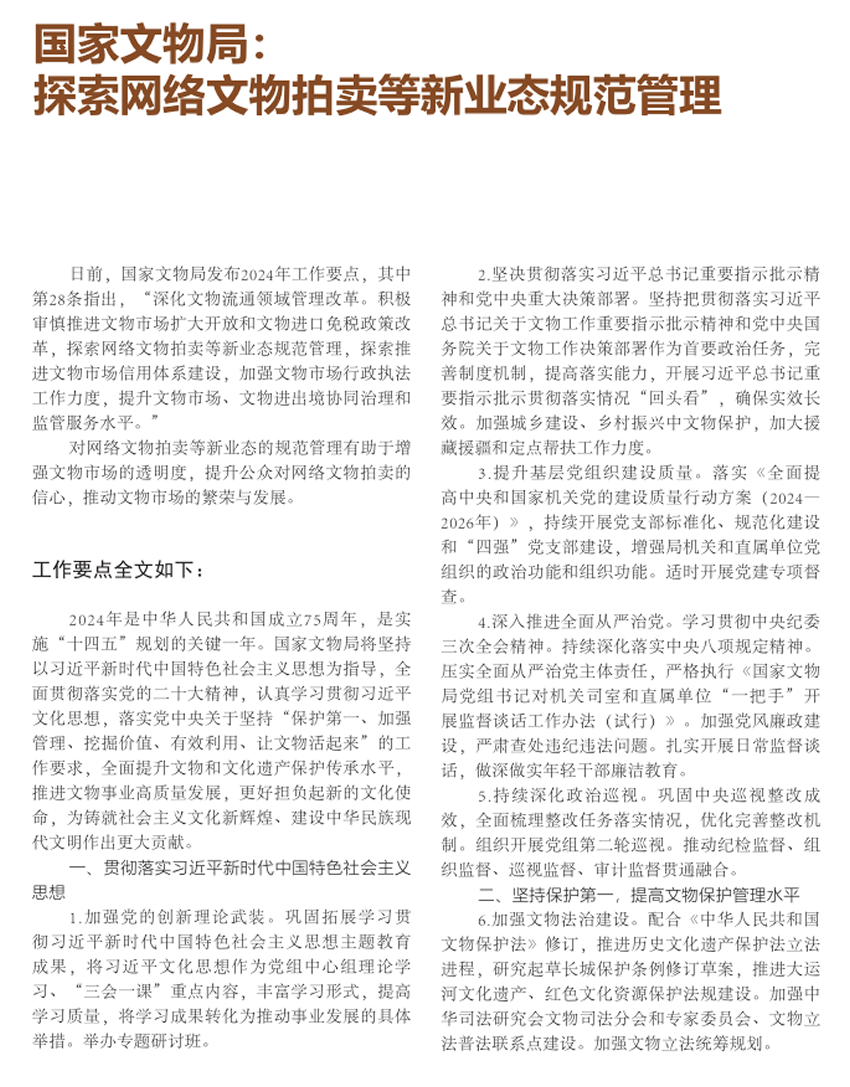 :國家文物局:探索網(wǎng)絡(luò )文物拍賣(mài)等新業(yè)態(tài)規范管理
