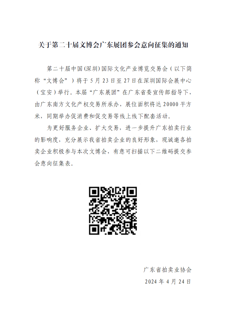 :關(guān)于第二十屆文博會(huì )廣東展團參會(huì )意向征集的通知