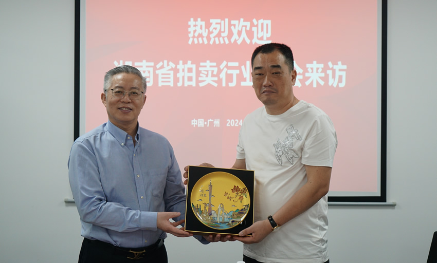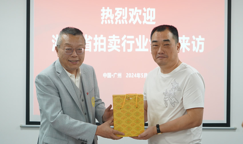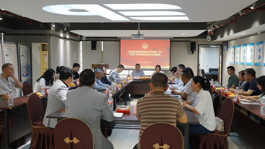 5月13日-14日,湖南省拍賣(mài)行業(yè)協(xié)會(huì )在會(huì )長(cháng)盛海建,副會(huì )長(cháng)兼秘書(shū)長(cháng)陳小橋的帶領(lǐng)下專(zhuān)程來(lái)廣州與我會(huì )訪(fǎng)問(wèn)交流。湖南省拍協(xié)副會(huì )長(cháng)趙藝、陳建輝、虢利平,監事長(cháng)范吉軍,副監事長(cháng)陳紅,副秘書(shū)長(cháng)何國標,常務(wù)理事何菊艷、蔣周飛、孫艷等一行17人隨團參訪(fǎng)。廣東省拍賣(mài)業(yè)協(xié)會(huì )黨支部書(shū)記雷敏,會(huì )長(cháng)鄭曉星,副會(huì )長(cháng)張曉玲、溫國健、林朝暉、李保華,秘書(shū)長(cháng)蔡健華,監事長(cháng)陳繼軍,特資委副主任楊京等熱情接待。