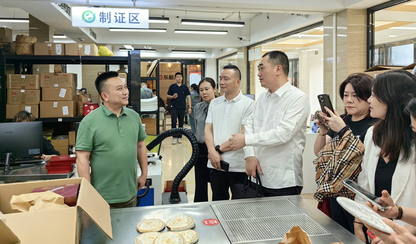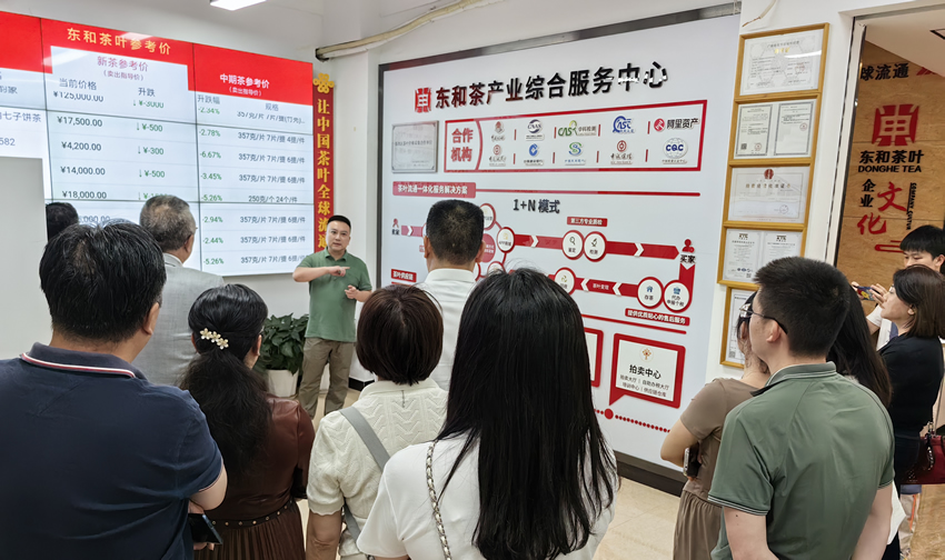 隨后,湖南省拍協(xié)一行在廣東省拍協(xié)領(lǐng)導陪同下前往會(huì )員企業(yè)--廣東東和茶葉有限責任公司進(jìn)行參觀(guān)學(xué)習,受到公司董事長(cháng)陳軍日熱情歡迎。他詳細介紹了公司的發(fā)展情況,東和公司創(chuàng )立于2008年,是一家以交易知名流通茶葉為核心業(yè)務(wù)的公司,為廣大茶友提供誠信、可靠的茶葉交易平臺,也因而極大地滿(mǎn)足了商家、消費者在日常生活中對茶葉的需求,同時(shí)打造包括交易渠道、服務(wù)端、大宗商品服務(wù)、O2O體驗店和金融服務(wù)在內的茶葉供應鏈,提供“1+N模式”茶葉流通一體化服務(wù)解決方案。