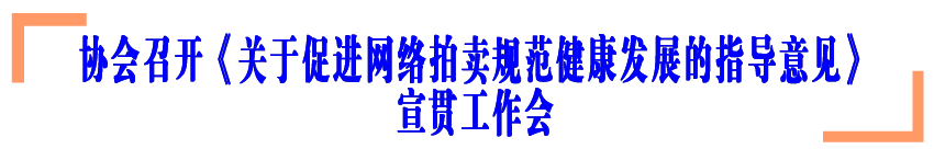 會(huì )議首先由協(xié)會(huì )黨支部書(shū)記雷敏作講話(huà)。她表示,《指導意見(jiàn)》這份文件是近年來(lái)拍賣(mài)行業(yè)的重大利好,作為首個(gè)對網(wǎng)絡(luò )拍賣(mài)加以規范的文件,協(xié)會(huì )有必要對此進(jìn)行宣傳,這也是拍賣(mài)行業(yè)擁護和配合市場(chǎng)監管總局對網(wǎng)絡(luò )拍賣(mài)監管的體現。協(xié)會(huì )將繼續積極發(fā)揮政府與市場(chǎng)之間樞紐的作用,協(xié)助監管部門(mén)做好引導與宣傳,更好推動(dòng)網(wǎng)絡(luò )拍賣(mài)秩序的健康發(fā)展。