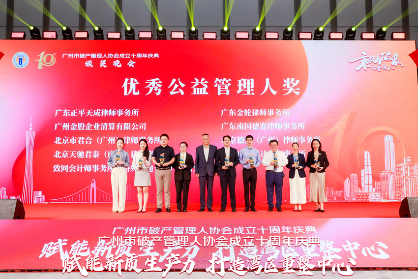 協(xié)會(huì )榮獲“廣州市破產(chǎn)管理人協(xié)會(huì )成立十周年優(yōu)秀合作伙伴獎”