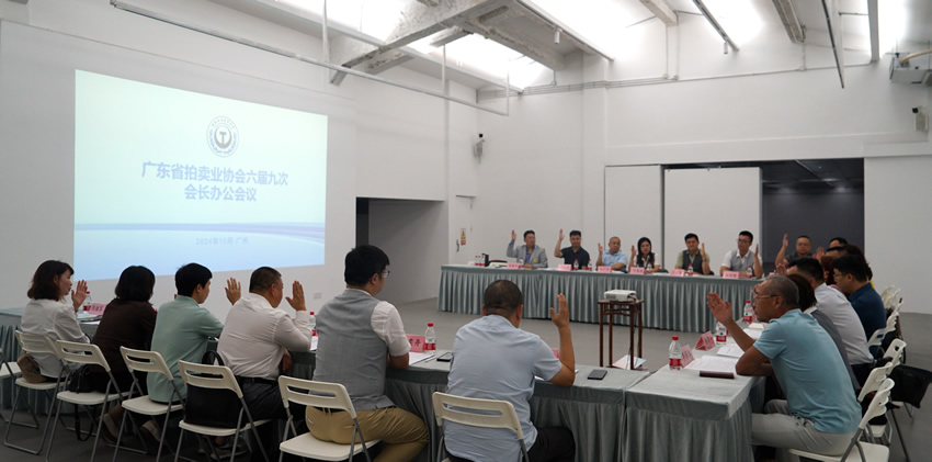 10月29日下午,廣東省拍賣(mài)業(yè)協(xié)會(huì )六屆九次會(huì )長(cháng)辦公會(huì )議在廣州舉行。協(xié)會(huì )黨支部書(shū)記雷敏,會(huì )長(cháng)鄭曉星,副會(huì )長(cháng)張曉玲、溫國健、李保華、謝建華、黃勵、于思迅、呂廣豐、楊捷才、莊武龍、陳于寧、趙勇、鄧衛華、黃沛然、陳仲昌、錢(qián)奕舟、何騰欄,秘書(shū)長(cháng)蔡健華,監事長(cháng)、監事單位代表出席會(huì )議。會(huì )議由鄭曉星會(huì )長(cháng)主持。