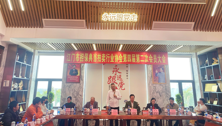 114日下午,協(xié)會(huì )會(huì )長(cháng)鄭曉星應邀出席了江門(mén)市擔保典當拍賣(mài)行業(yè)協(xié)會(huì )四屆二次會(huì )員大會(huì )。江門(mén)全市二十余家擔保、典當和拍賣(mài)會(huì )員企業(yè)參加了會(huì )議。省拍協(xié)副會(huì )長(cháng)黃勵,省典當行業(yè)協(xié)會(huì )會(huì )長(cháng)張曙也應邀出席了會(huì )議。會(huì )議由江門(mén)協(xié)會(huì )新任秘書(shū)長(cháng)徐汐暉主持。