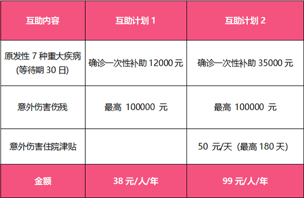 溫馨提示:上述互助計劃與所有保障體系、報銷(xiāo)、個(gè)人保險均不沖突。
