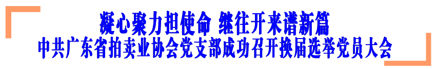 根據《中國共產(chǎn)黨章程》和《中國共產(chǎn)黨基層組織選舉工作條例》的有關(guān)規定,經(jīng)報請上級黨委批準,廣東省拍賣(mài)業(yè)協(xié)會(huì )黨支部于2025年9月17日上午召開(kāi)換屆選舉大會(huì ),選舉產(chǎn)生新一屆支委會(huì )。會(huì )議由支部副書(shū)記陳繼軍同志主持,上級黨委黨建指導員鄧春生同志全程參加本次會(huì )議并作了講話(huà)。