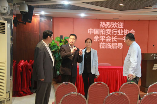 圖為:中拍協(xié)會(huì )長(cháng)余平視察廣東省公共資源拍賣(mài)中心第三會(huì )場(chǎng)