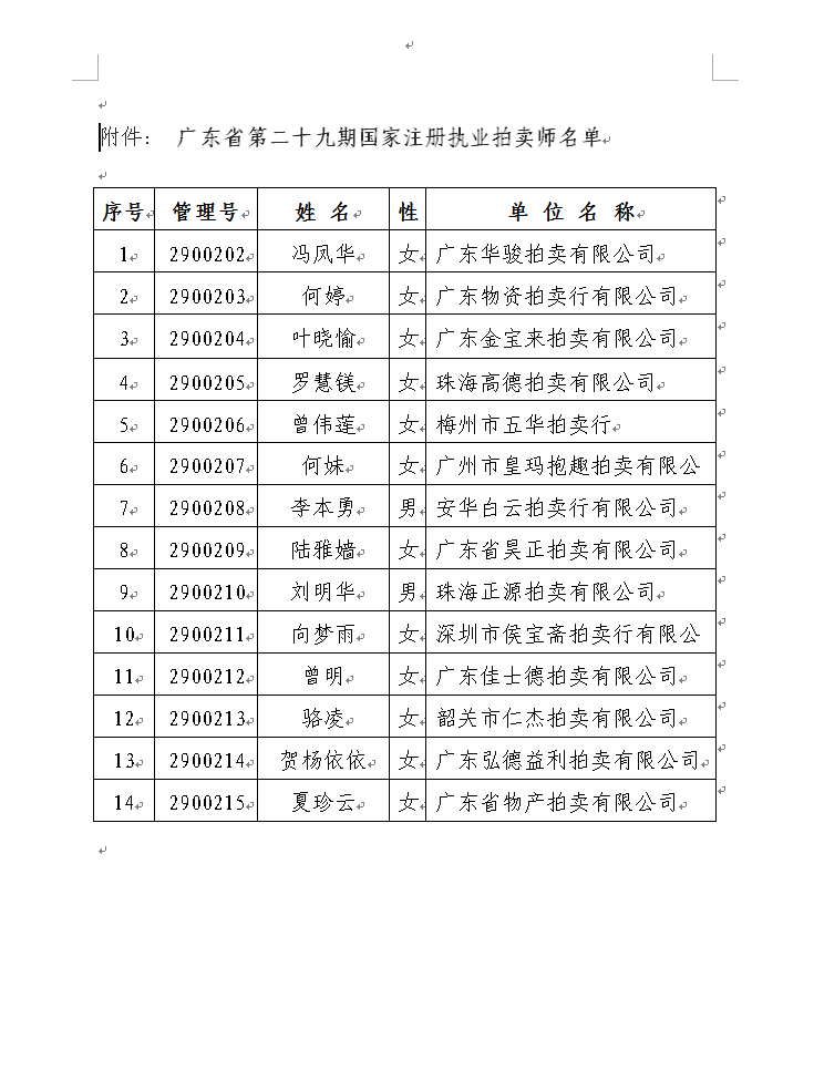公布我省第二十九期國家注冊執業(yè)拍賣(mài)師名單的通知